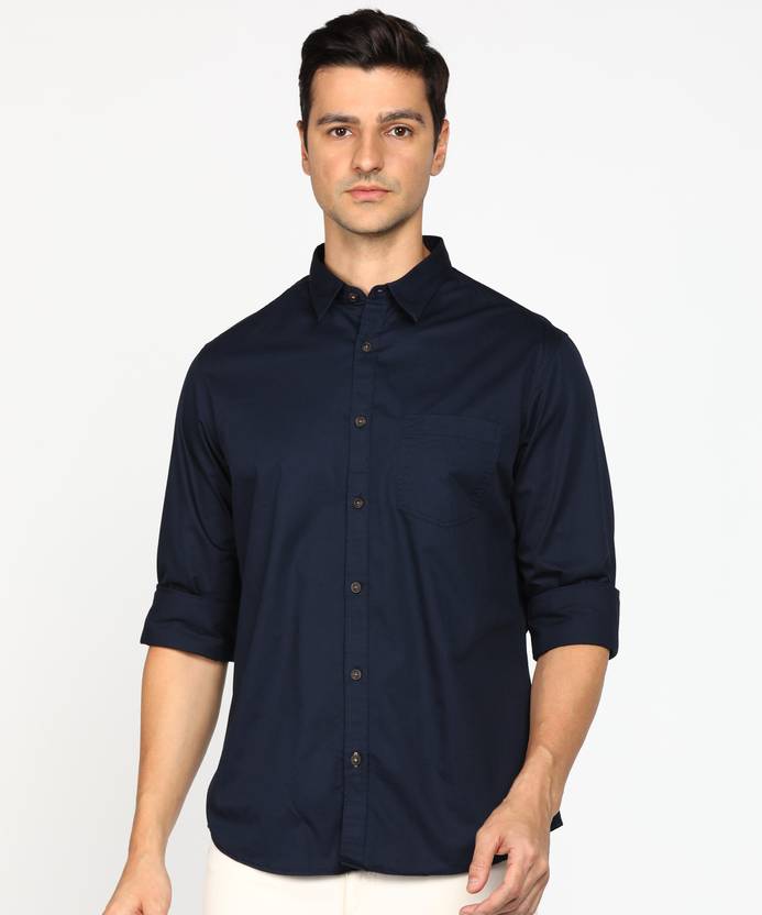 INDIAN TERRAIN Men Solid Casual Dark Blue Shirt