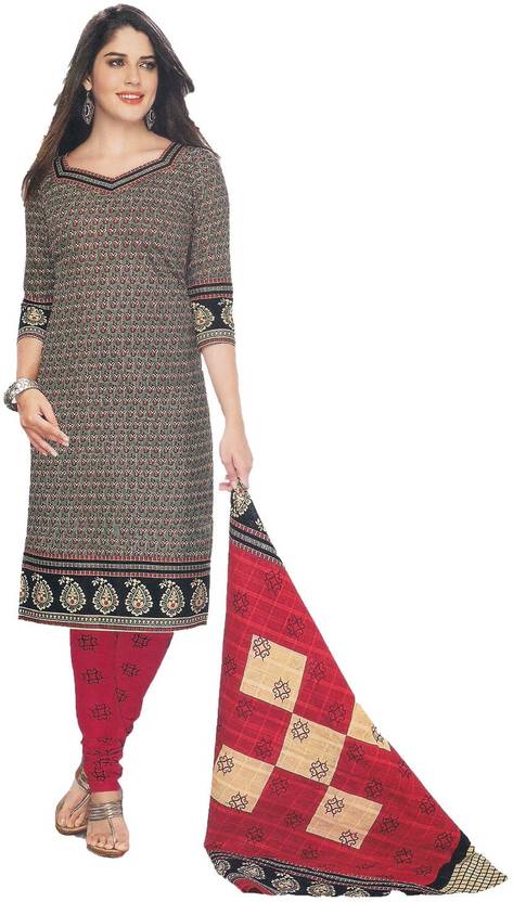 Semi Stitched Cotton Blend Salwar Suit Material Printed