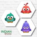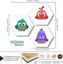 indian wood Cartoon Small Birds Modern Art Set of 3 Hexagon Wall Decor Digital Reprint 21 inch x 21 inch Painting (With Frame, Pack of 3)