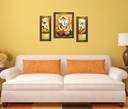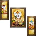 Indianara Ganesha playing Tabla Digital Reprint 13 inch x 22.2 inch Painting (With Frame, Pack of 3)