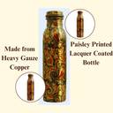 IndianArtVilla Water Bottle,Printed Paisley Design 1000 ml Copper Bottle (Pack of 1, Green)