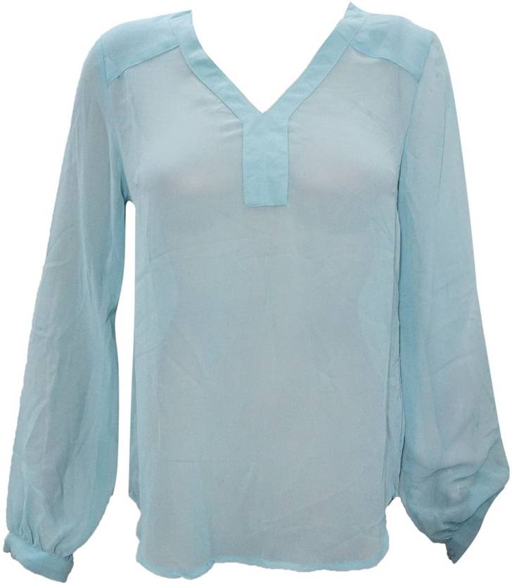 Casual Regular Sleeves Solid Women Light Blue Top