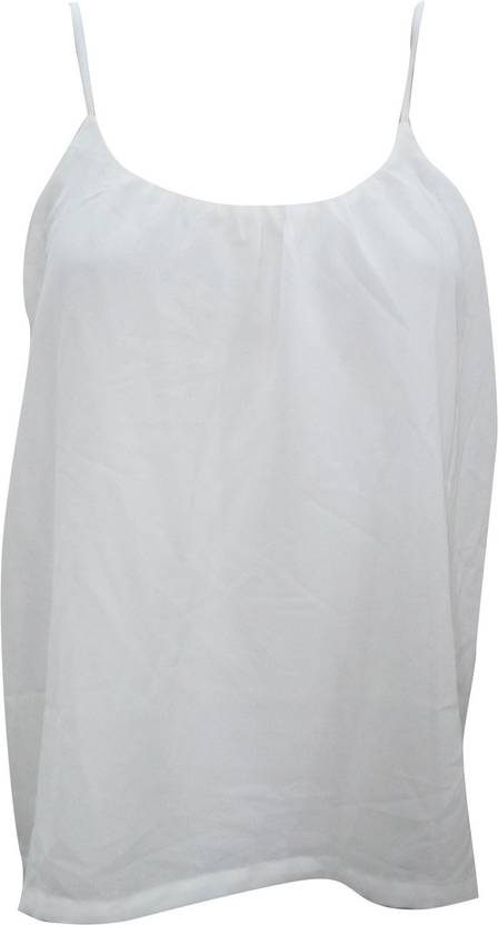 Casual Sleeveless Solid Women White Top