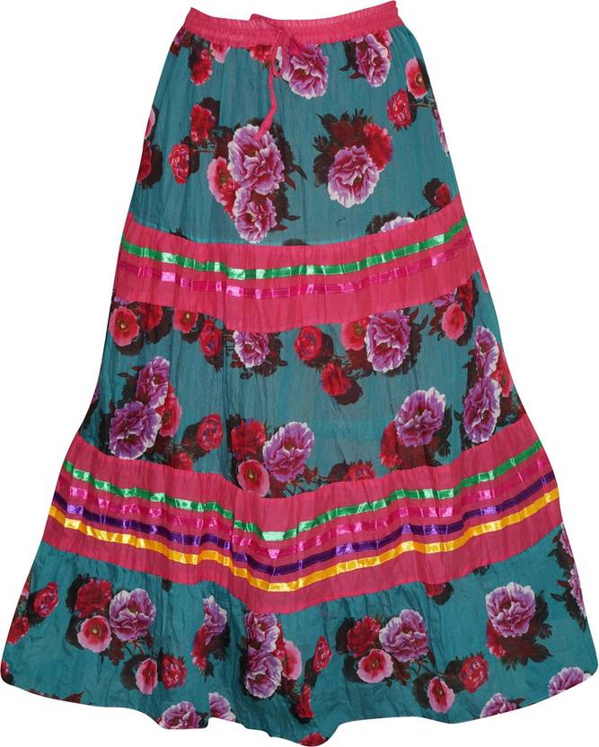 Indiatrendzs Women Floral Print A-line Green Skirt
