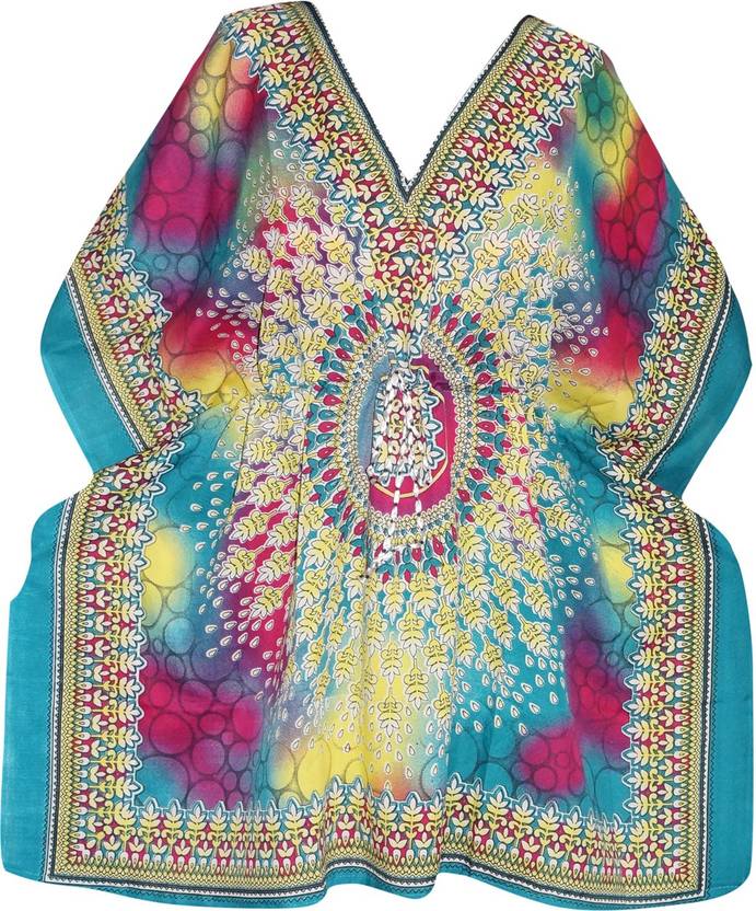 Indiatrendzs brings a wide and gorgeous collection of casual wear Polyester Crepe fashionable Printed Kaftans for women. This kimono sleeve kaftan from Indiatrendzs you in the comfort of Polyester Crepe . That is in demand for the beautiful prints of flowers, idols, and modern art. Our western wear kaftans are highly liked by modern women and can be wearing with jeans and casual trouser. Their styling is also done keeping in mind the latest fashion trends. These kaftans are not only attractive but also skin friendly. This style is loose fitting and perfect for larger girls who like free flowing garments. Most comfortable and very soft fabric kaftan. Beautiful kaftan for every woman to suit their beauty every day. Easy to wear easy to fit in. good quality fabric to support your movement... Dress it up or down wear to the beach or to a cocktail party. Kaftans dresses are versatile and take you anywhere any time. Gorgeous and cool as a beach cover-up...or wear it over a slip for a perfectly effortless tropical evening ensemble!! Wear this kaftan and get relax in summer. While the attractive print on this kaftan accentuates its visual appeal, its Polyester Crepe fabric offers a soft feel and a comfortable. Fabric – Polyester Crepe ; Size chest (Bust)60 inch, (Length) –35 inch. (Please check your Size before placing the order). (We want you to be totally satisfied with your purchase. However, if there are any issues with your purchase we'd be happy to help fix the problem. If you are not satisfied you can return your purchase for a refund or exchange, but we may refuse or delay returns if fraud or abuse is suspected. Item must be in its original condition. USED OR WASHED ITEMS WILL NOT BE REFUNDED. Shipping is not refunded.)