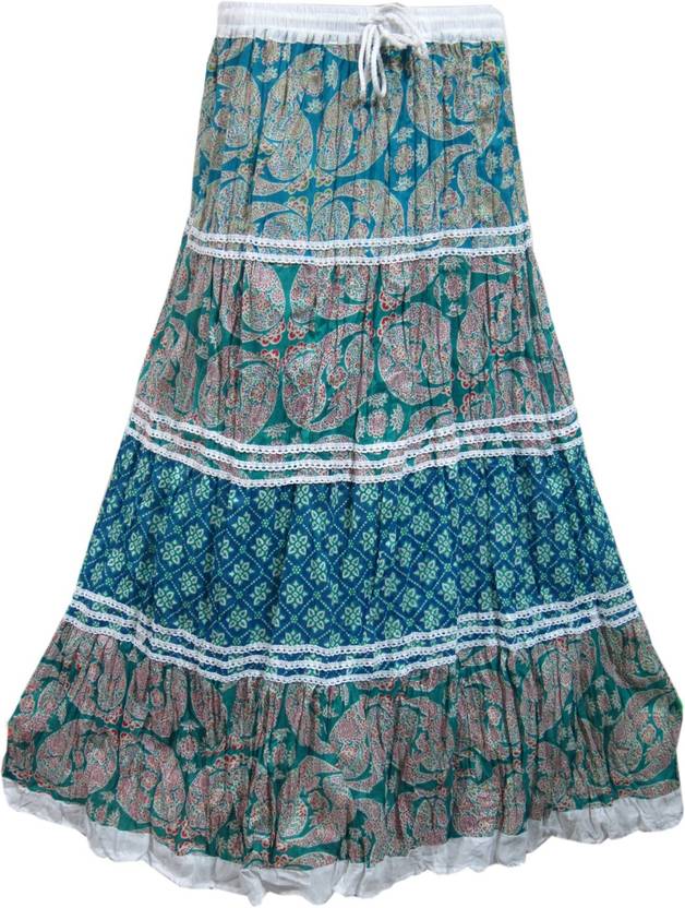 Indiatrendzs Women Printed A-line Green, Blue Skirt