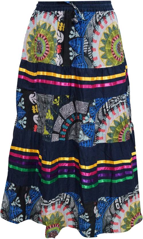 Indiatrendzs Women Printed A-line Blue Skirt