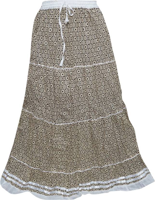 Indiatrendzs Women Printed A-line Black, Beige Skirt