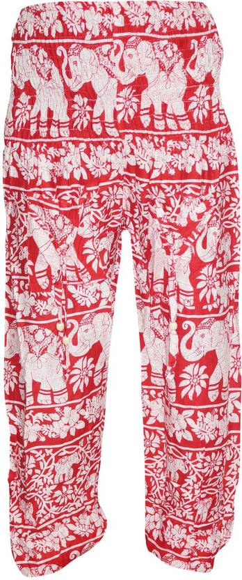Indiatrendzs Women Regular Fit Red, White Cotton Blend Trousers