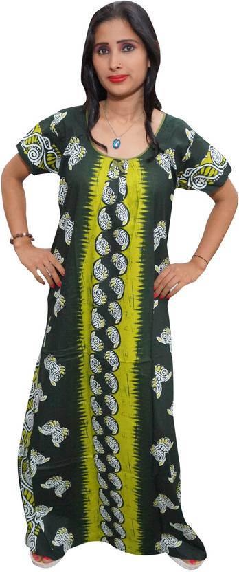 Indiatrendzs Women Nighty (Dark Green, Light Green)