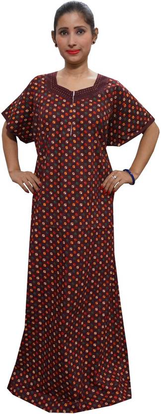 Indiatrendzs brings a wide and gorgeous collection of nightwear Cotton Maxi Night Gown for women. Most comfortable and very soft fabric night gown.beautiful night gown for every women to suit there beauty every night. easy to wear easy to fit in. good quality fabric to support your movement..Size Length:58 Chest:52 ...(Please Check your Size before placing the order)