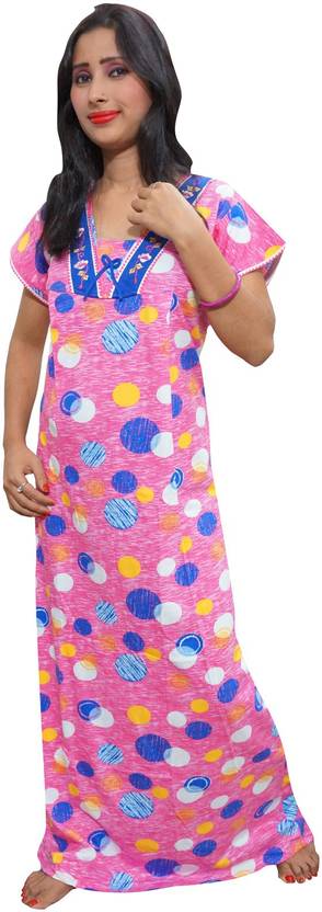 Indiatrendzs brings a wide and gorgeous collection of nightwear Poly Cotton (stretchable cotton) Maxi Nighty for women. Most comfortable and very soft fabric night gown.beautiful night gown for every women to suit there beauty every night. easy to wear easy to fit in. good quality fabric to support your movement.. Size Length:54 Chest:42...(Please Check your Size before placing the order)
