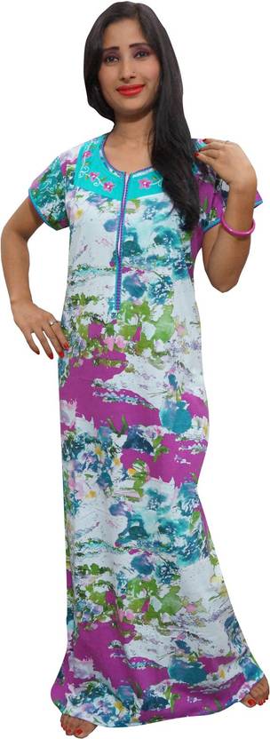 Indiatrendzs brings a wide and gorgeous collection of nightwear Poly Cotton (stretchable cotton) Maxi Nighty for women. Most comfortable and very soft fabric night gown.beautiful night gown for every women to suit there beauty every night. easy to wear easy to fit in. good quality fabric to support your movement.. Size Length:54 Chest:40...(Please Check your Size before placing the order)