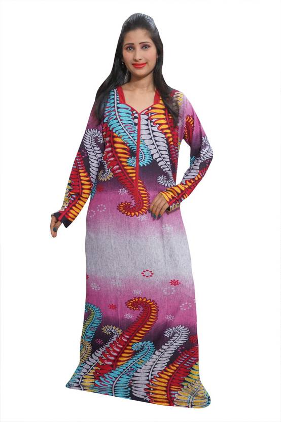 Indiatrendzs brings a wide and gorgeous collection of Colorful nightwear Hosiery (stretchable Cotton) Maxi Nighty with Stylish Neck for women. Most comfortable and very soft fabric night gown.beautiful printed night gown for every women to suit there beauty every night. easy to wear easy to fit in. good quality fabric to support your movement.. Size Length:58 Chest:40...(Please Check your Size before placing the order)