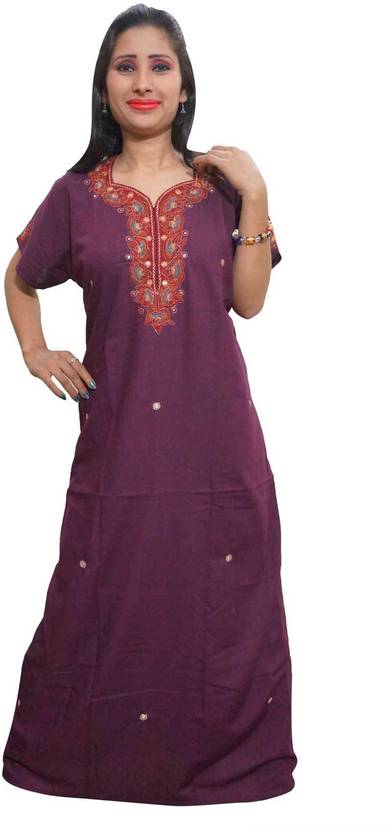 Indiatrendzs Brings A Wide And Gorgeous Collection Of Nightwear Designer Cotton Maxi For Women with Embroidered Neck line. beautiful Nighty for every women to suit there beauty every night. easy to wear easy to fit in. good quality fabric to support your movement.Most Comfortable And Very Soft Fabric Nighty.Size Length:52 Chest:46…(Please Check your Size before placing the order)