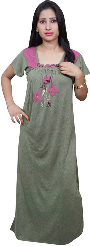 Indiatrendzs Women Nighty  (Green)