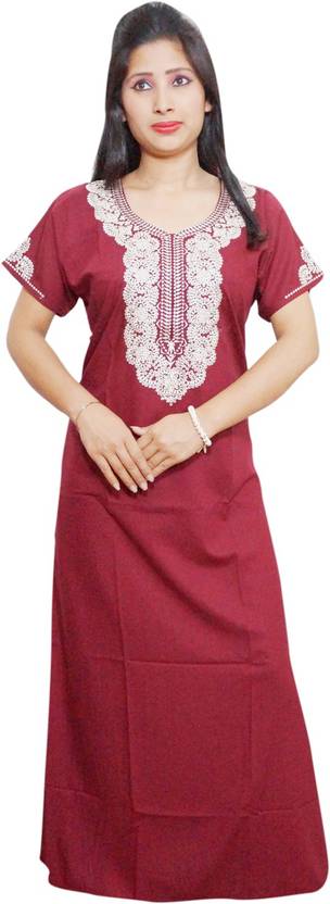 Indiatrendzs Women Nighty  (Maroon)