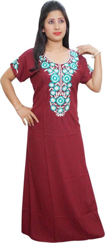 Indiatrendzs brings a wide and gorgeous collection of nightwear Cotton Maxi Night gown for women. This full length nighty from indiatrendzs you in the comfort of pure cotton. Bedroom to the kitchen, this nighty is perfect for unwinding with an easy to care for and simple design. . Most comfortable and very soft fabric night gown. Beautiful night gown for every woman to suit their beauty every night. Easy to wear easy to fit in. good quality fabric to support your movement... Wear this nightwear and get ready to have a sound sleep rife with beautiful dreams. While the attractive print on this nighty accentuates its visual appeal, its cotton fabric offers a soft feel and a comfortable sleep. Fabric - Pure Cotton; Size chest (Bust) – 44inch, (Length) – 56inch. (Please check your Size before placing the order).
