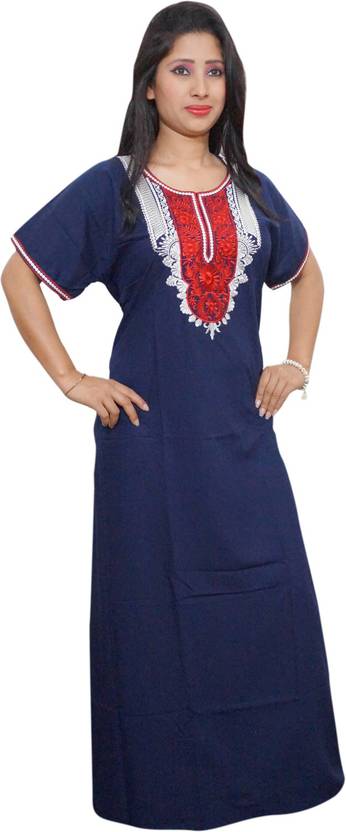Indiatrendzs brings a wide and gorgeous collection of nightwear Cotton Maxi Night gown for women. This full length nighty from indiatrendzs you in the comfort of pure cotton. Bedroom to the kitchen, this nighty is perfect for unwinding with an easy to care for and simple design. . Most comfortable and very soft fabric night gown. Beautiful night gown for every woman to suit their beauty every night. Easy to wear easy to fit in. good quality fabric to support your movement... Wear this nightwear and get ready to have a sound sleep rife with beautiful dreams. While the attractive print on this nighty accentuates its visual appeal, its cotton fabric offers a soft feel and a comfortable sleep. Fabric - Pure Cotton; Size chest (Bust) – 46inch, (Length) – 56inch. (Please check your Size before placing the order).