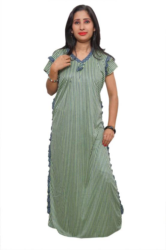 Indiatrendzs brings a wide and gorgeous collection of nightwear Hosiery Cotton Maxi Night gown for women. This full length nighty from Indiatrendzs you in the comfort of Hosiery Cotton. Bedroom to the kitchen, this nighty is perfect for unwinding with an easy to care for and simple design. . Most comfortable and very soft fabric night gown. Beautiful night gown for every woman to suit their beauty every night. Easy to wear easy to fit in. good quality fabric to support your movement... Wear this nightwear and get ready to have a sound sleep rife with beautiful dreams. While the attractive print on this nighty accentuates its visual appeal, its Hosiery Cotton fabric offers a soft feel and a comfortable sleep. Fabric - Hosiery Cotton; Size chest (Bust) – 44 inch, (Length) – 52 inch. (Please check your Size before placing the order). (We want you to be totally satisfied with your purchase. However, if there are any issues with your purchase we'd be happy to help fix the problem. If you are not satisfied you can return your purchase for a refund or exchange, but we may refuse or delay returns if fraud or abuse is suspected. Item must be in its original condition. USED OR WASHED ITEMS WILL NOT BE REFUNDED. Shipping is not refunded.)