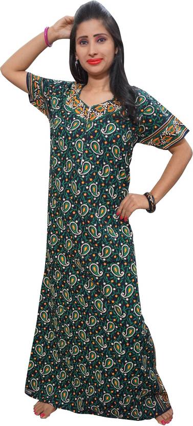 Indiatrendzs brings a wide and gorgeous collection of nightwear Cotton Maxi Night gown for women. This full length nighty from Indiatrendzs you in the comfort of Cotton. Bedroom to the kitchen, this nighty is perfect for unwinding with an easy to care for and simple design. . Most comfortable and very soft fabric night gown. Beautiful night gown for every woman to suit their beauty every night. Easy to wear easy to fit in. good quality fabric to support your movement... Wear this nightwear and get ready to have a sound sleep rife with beautiful dreams. While the attractive print on this nighty accentuates its visual appeal, its Cotton fabric offers a soft feel and a comfortable sleep. Fabric - Cotton; Size chest (Bust) – 42 inch, (Length) – 56 inch. (Please check your Size before placing the order). (We want you to be totally satisfied with your purchase. However, if there are any issues with your purchase we'd be happy to help fix the problem. If you are not satisfied you can return your purchase for a refund or exchange, but we may refuse or delay returns if fraud or abuse is suspected. Item must be in its original condition. USED OR WASHED ITEMS WILL NOT BE REFUNDED. Shipping is not refunded.)