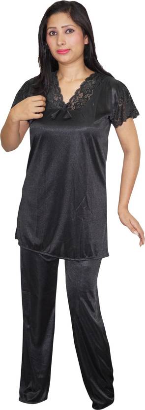Indiatrendzs Brings You Silk satin Evening Wear Or Designed Nightwear Tops With Matching Solid Pajama Lower Bottom Pajama Set That Will Set The Mood. Feel As Glamorous As A Belle Of The Night While You Slip Into This Flowing silk satin Night Pajama Set . The Smooth And Soft Fabric Makes The Wear Comfortable. This Wear Will Definitely Crave Out The Sensuality And Help Take Control. Match With Perfect Perfume For Perfect Night.Size Top: Length: 28 Chest: 40 Pajama: Length: 40 waist: 26X38...(Please Check your Size before placing the order)