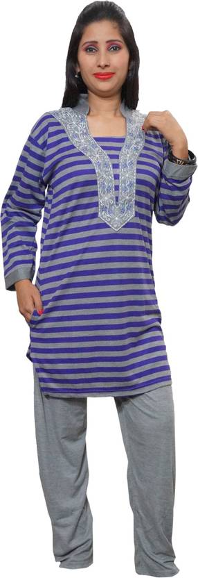 Indiatrendzs Women Top & Pyjama Set Purple, Grey Striped