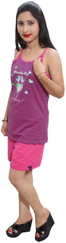 Indiatrendzs Brings You Cottony Evening Wear Or Floral Designed Nightwear Pink & Blue Tops With Matching Solid Short Lower Bottom Short Set That Will Set The Mood. Feel As Glamorous As A Belle Of The Night While You Slip Into This Flowing Cotton Night Short Set . The Smooth And Soft Fabric Makes The Wear Comfortable. This Wear Will Definitely Crave Out The Sensuality And Help Take Control. Match With Perfect Perfume For Perfect Night.Size Top: Length: 27 Chest: 36 Short: Length: 17 waist: 28X38...(Please Check your Size before placing the order)