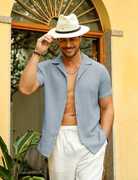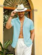 Experience the ultimate in casual comfort with our button-down short sleeve shirt, crafted from premium popcorn soft fabric. This lightweight and breathable shirt is perfect for any relaxed setting, offering a stylish yet laid-back look.