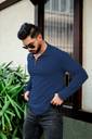 INDICLUB Self Design Men Polo Neck Blue T-Shirt