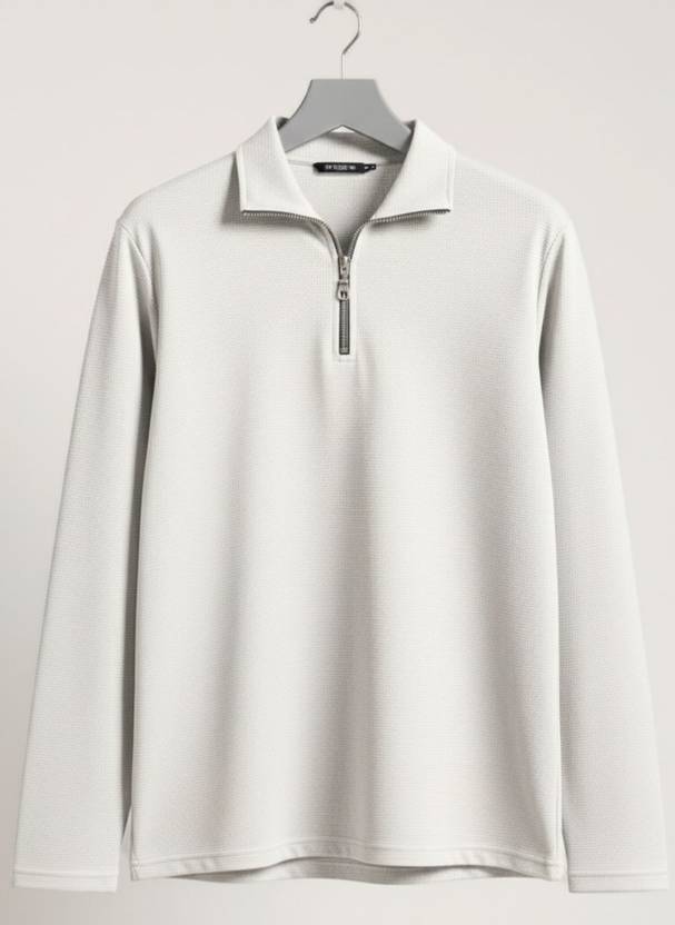 INDICLUB Self Design Men Polo Neck White T-Shirt