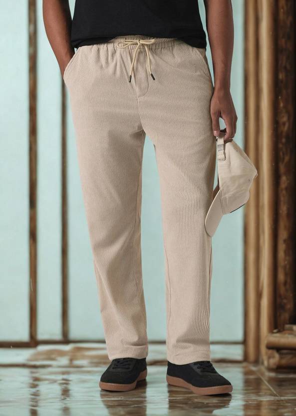INDICLUB Solid Men Beige Track Pants
