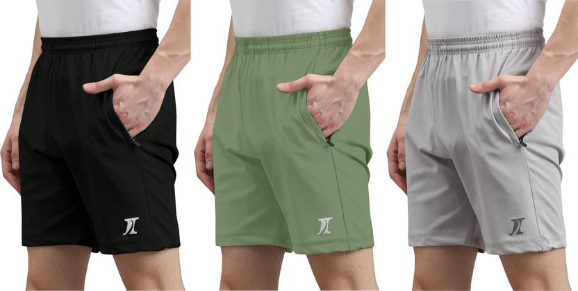 INDICLUB Solid Men Black, Light Green, Silver Casual Shorts