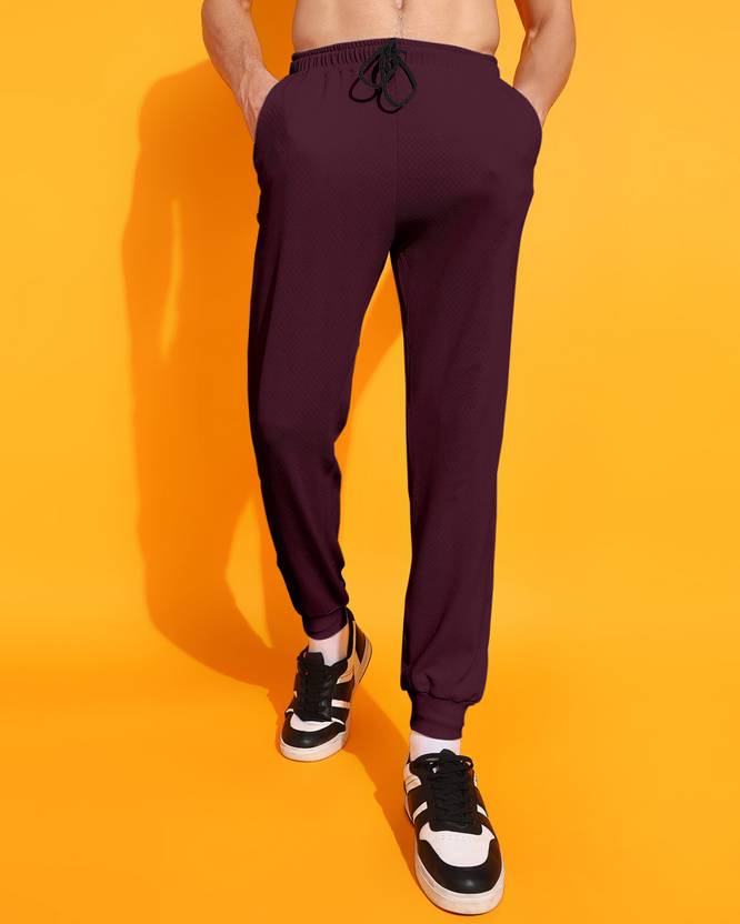 Men Solid Maroon Track Pants