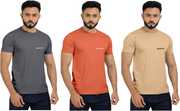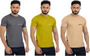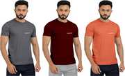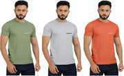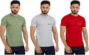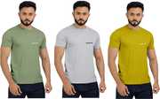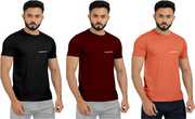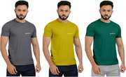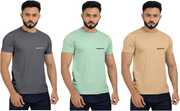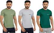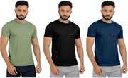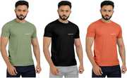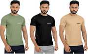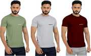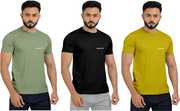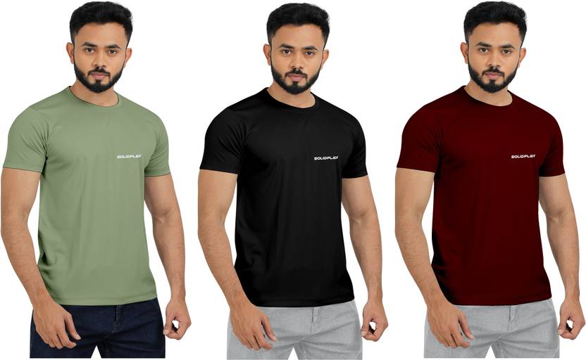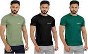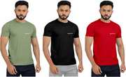 INDICLUB Solid Men Round Neck Maroon, Black, Light Green T-Shirt