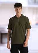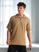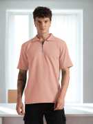 The Men's polister Half Sleeve Zipper T-shirt offers a stylish and comfortable option for casual wear. Its ribbed texture and zippered collar provide a modern look, while the polyblend fabric ensures breathability and durability, making it suitable for daily use.