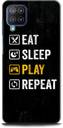 INDICRAFT Back Cover for SAMSUNG Galaxy F12 GAME, BLACK, EAT SLEEP PLAY REPEAT (Multicolor, Dual Protection, Pack of: 1)