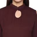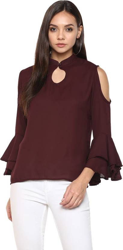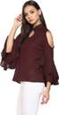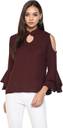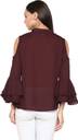 Indietoga women's maroon moss crepe cold shoulder bell sleeves western wear top