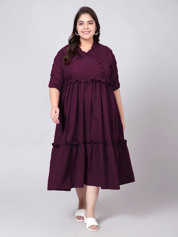 Indietoga Plus Size Women A-line Purple Midi/Calf Length Dress