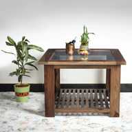INDIKASA Solid Sheesham Wood and Glass on Top Solid Wood Coffee Table (Finish Color - Brown, Pre-assembled)
