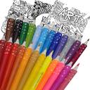 | Key Features | - WHAT'S INSIDE : This combo pack includes colored 24 pcs Markers set + FREE sheets for doodle coloring., GREAT MARKERS : Marker pens for drawing lines & details, journal, planner, calendar, doodling, notebook, painting, writing, mandala coloring, sketching, designs and drawing and coloring small intricate patterns. Perfect Colored Pens for School kids for homework and scrapbooking and Adults Coloring activities., USER FRIENDLY : Acid-free and non-toxic ink doesn’t smear, fade, or skip. Premium Gel Pens set for Adult & Kids Coloring Books, School Art Projects, Party Invites, Greeting Cards, DIY Decoration, Letters to Friends. Each Colored Pen is fitted with Comfort Grip, easy to hold and comfortable for writing, drawing, scrapbooking, sketching, Crafting, doodling, art designs and journaling., FREE DOODLING SHEETS : Free sheets with beautiful satisfying Doodling patterns for coloring using these colorful shiny sketchpens essentials can help you to relax and calm your mind. Unleash the artist within you!