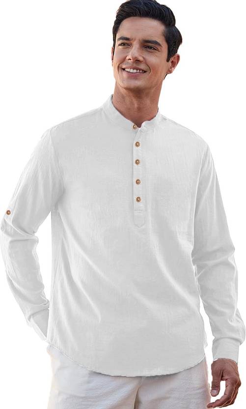 This Cotton Blend short kurta is perfect for men who value style and comfort. Its versatile design makes it ideal for any occasion—festivals, parties, or casual outings. Product Details 📋 👨‍🦰 Gender: Men 🎨 Pattern: Solid 🧵 Design Type: Plain 🔘 Closure: Button 👕 Sleeve: Full Sleeve (Roll-Up Option) ⬆️ Waist Rise: Mid-Rise 🪡 Collar: Mandarin/Chinese ✂️ Hemline: Curved 🌿 Fabric: Cotton Blend 📏 Product Length: Short 📦 Pack of: 1 Material & Care 🧺 Fabric: Cotton Blend Wash: Suitable for hand wash and machine wash. How to Style 🎯 Pair it with dark-wash denim or linen trousers for a casual look. Dress it up with a pair of churidar or slim-fit pants for festive occasions. Add leather sandals or loafers and a wristwatch for a classy finish. Roll up the sleeves for a relaxed vibe during daytime events. This short kurta seamlessly blends traditional elegance with modern styling, making it a wardrobe essential for every man! 👌"