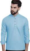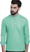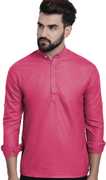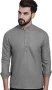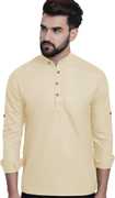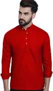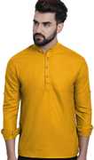 Men Solid Cotton Blend Straight Kurta (Orange)