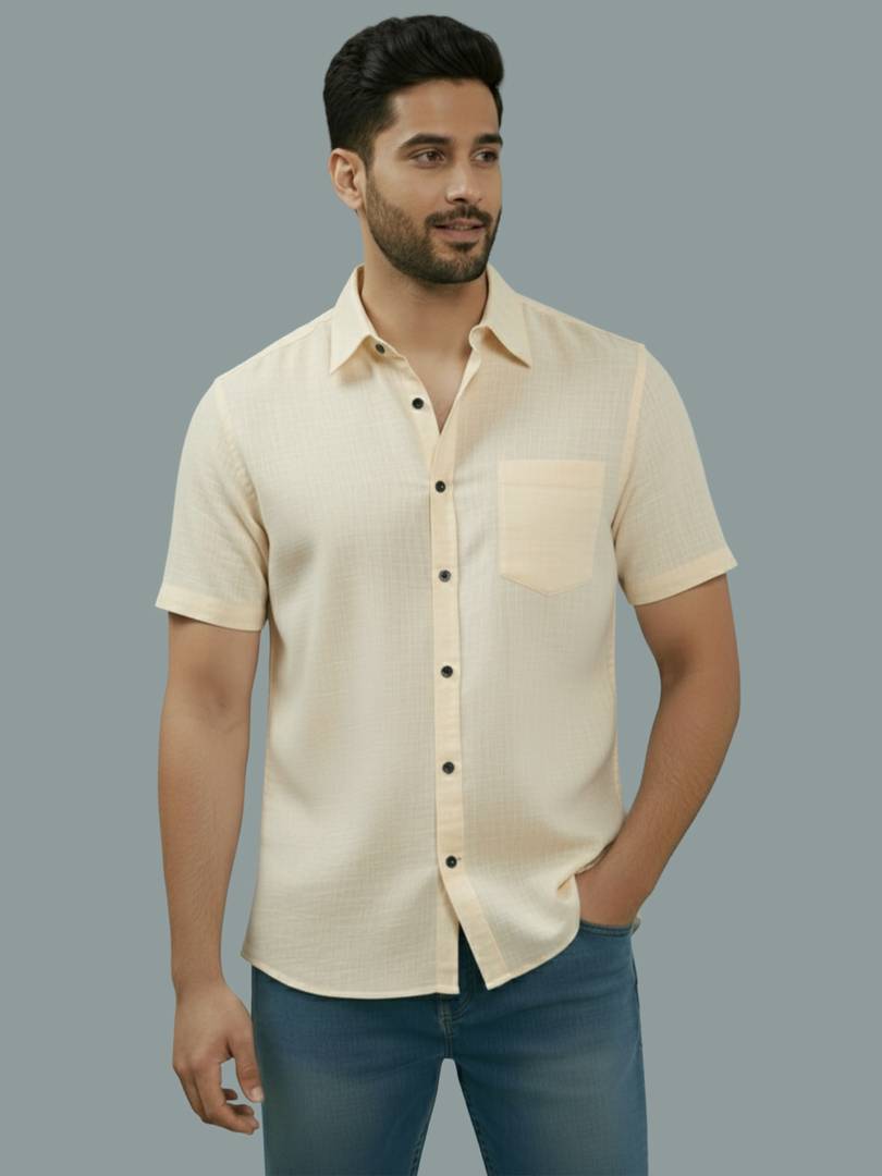 This Cotton Blend Shirt is perfect for men who value style and comfort. Its versatile design makes it ideal for any occasion—festivals, parties, or casual outings. Product Details 📋 👨🦰 Gender: Men 🎨 Pattern: Solid 🧵 Design Type: Solid 🔘 Closure: Button 👕 Sleeve: Half Sleeve ⬆️ Waist Rise: Mid-Rise 🪡 Hemline: Curved 🌿 Fabric: Cotton Blend 📏 Product Length: Short 📦 Material & Care 🧺 Fabric: Cotton Blend Wash: Suitable for hand wash and machine wash. How to Style 🎯 Pair it with dark-wash denim or linen trousers for a casual look. Dress it up with a pair of churidar or slim-fit pants for festive occasions. Add leather sandals or loafers and a wristwatch for a classy finish. Regular the sleeves for a relaxed vibe during daytime events. This shirt seamlessly blends traditional elegance with modern styling, making it a wardrobe essential for every man! 👌"