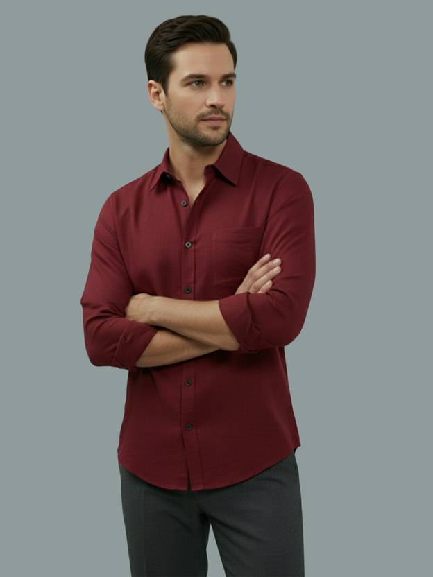 Yugnik Men Slim Fit Solid Spread Collar Casual Shirt