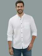 This Cotton Blend Shirt is perfect for men who value style and comfort. Its versatile design makes it ideal for any occasion—festivals, parties, or casual outings. Product Details ?? ????? Gender: Men ?? Pattern: Striped ?? Design Type: striped ?? Closure: Button ?? Sleeve: Full Sleeve ?? Waist Rise: Mid-Rise ?? Hemline: Curved ?? Fabric: Cotton Blend ?? Product Length: Short ?? Material & Care ?? Fabric: Cotton Blend Wash: Suitable for hand wash and machine wash. How to Style ?? Pair it with dark-wash denim or linen trousers for a casual look. Dress it up with a pair of churidar or slim-fit pants for festive occasions. Add leather sandals or loafers and a wristwatch for a classy finish. Regular the sleeves for a relaxed vibe during daytime events. This shirt seamlessly blends traditional elegance with modern styling, making it a wardrobe essential for every man! ??"