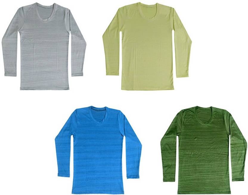 Boys Solid Polyester Regular T Shirt (Multicolor, Pack of 4)