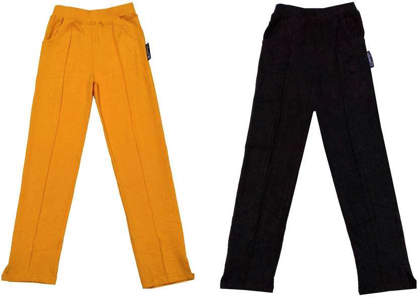 Pack of 2 Girls Regular Fit Yellow, Black Cotton Blend Trousers