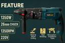 Inditrust 1350W 26mm hammer drill with 13mm drill chuck adaptor SDS drill bits and chisels (Blue) 6 MONTHS WARRANTY Rotary Hammer Drill (26 mm Chuck Size, 1350 W)