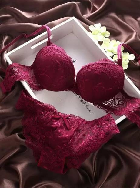 Bra & Panty Set Self Design Maroon Lingerie Set